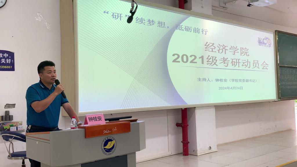 为早动员、早部署,帮助考研学生合理规划时间,加强考研自信心,促进高质量就业,4月24日,必赢线路检测3003no1在明德楼B5201多媒体室召开了2021级学生考研动员会。学院院长陈伟,正处级辅导员、党委副书记钟桂安,系主任、院办主任、辅导员、班主任以及2021级本科生和二年级研究生参加了会议。