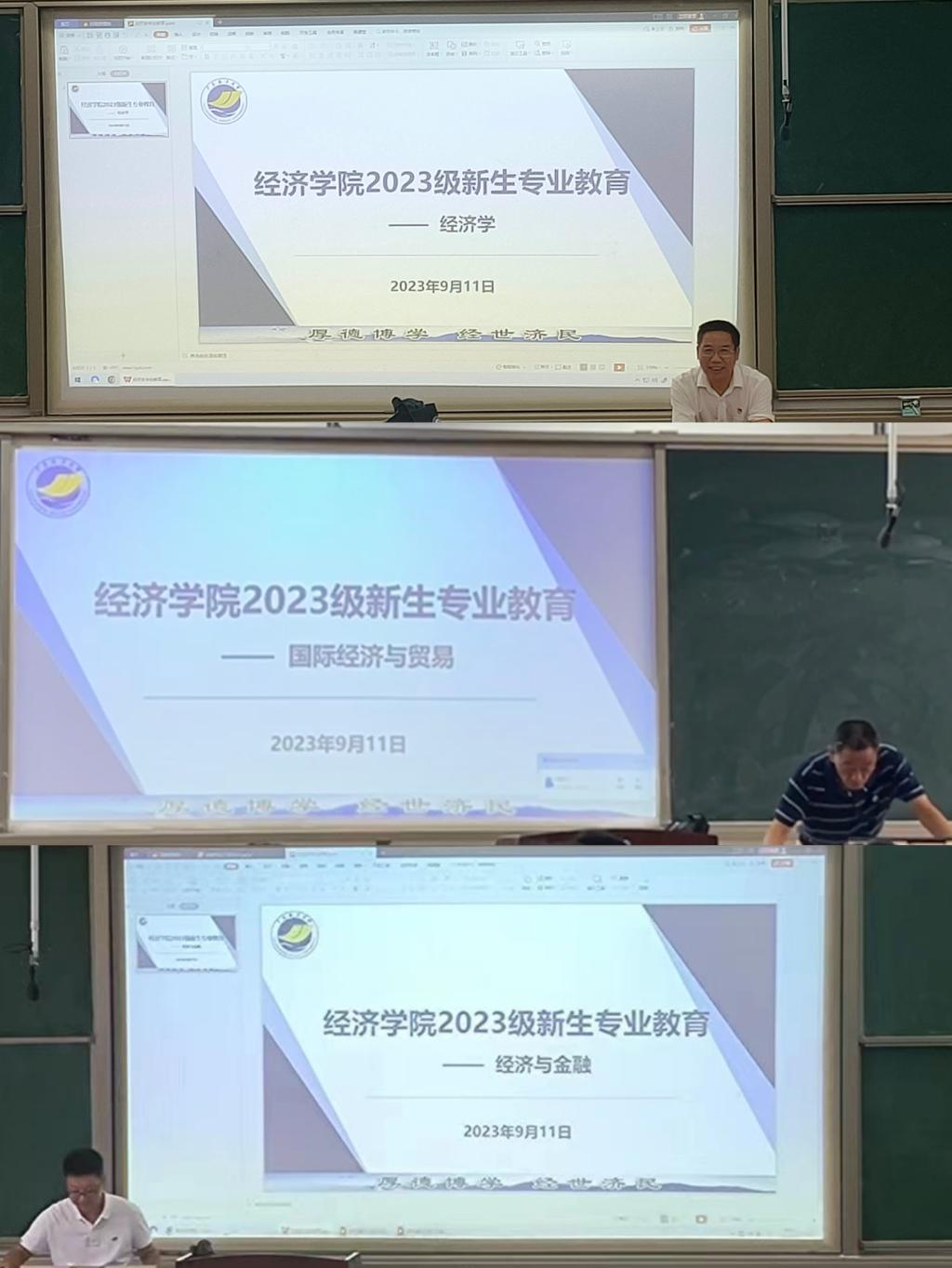 为了帮助2023级新生尽快适应大学阶段的学习和生活,促进新生探索自我可能性,进一步了解经济学科,增强新生对学院的集体归属感和学科专业的认同感,提升学术与职业发展能力,铺平未来的学术研究和职业道路。9月11日上午,必赢线路检测3003no1在钟海楼分别开展了经济学、国际经济与贸易和经济与金融专业2023级本科生“‘四个讲清楚’之大学读什么?”专业教育会议。各系系主任、专业老师、新生辅导员与班主任以及全体新生参加。