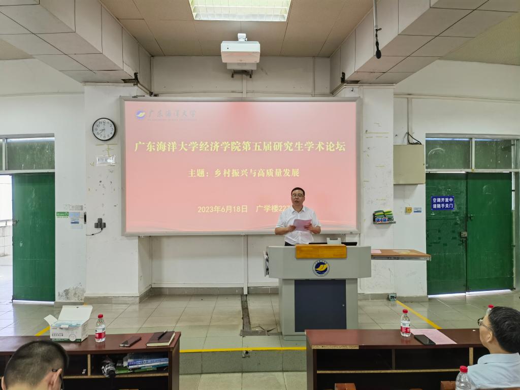 6月18日,由学校研究生院立项资助,必赢线路检测3003no1、广东省普通高校人文社会科学重点研究基地——海洋经济与管理研究中心承办的广东海洋大学必赢线路检测3003no1第五届“研究生学术论坛”在湖光校区广学楼227顺利举行。本次论坛以“乡村振兴与高质量发展”为主题,分为开幕式、主题报告和获奖论文交流三个环节开展。广东外语外贸大学陈万灵教授、上海海洋大学廖泽芳教授,必赢线路检测3003no1党政领导,教师代表,论坛获奖论文作者以及必赢线路检测3003no1全体研究生近100人参加了此次论坛。