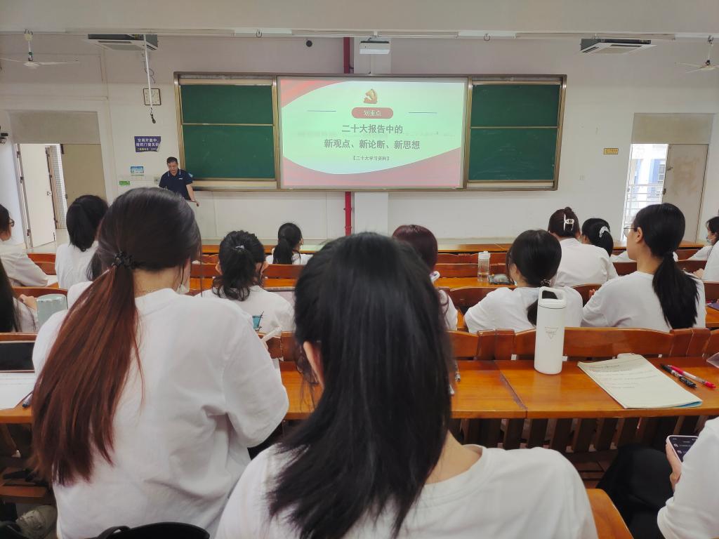 开班仪式结束后,温莉莉老师讲授了第一场党课—《党章》总纲部分关于党的性质、宗旨和指导思想等内容;全文老师以党的二十大报告中的新观点、新论断、新思想为切入点,为同学们上了一场深入浅出的精彩党课。