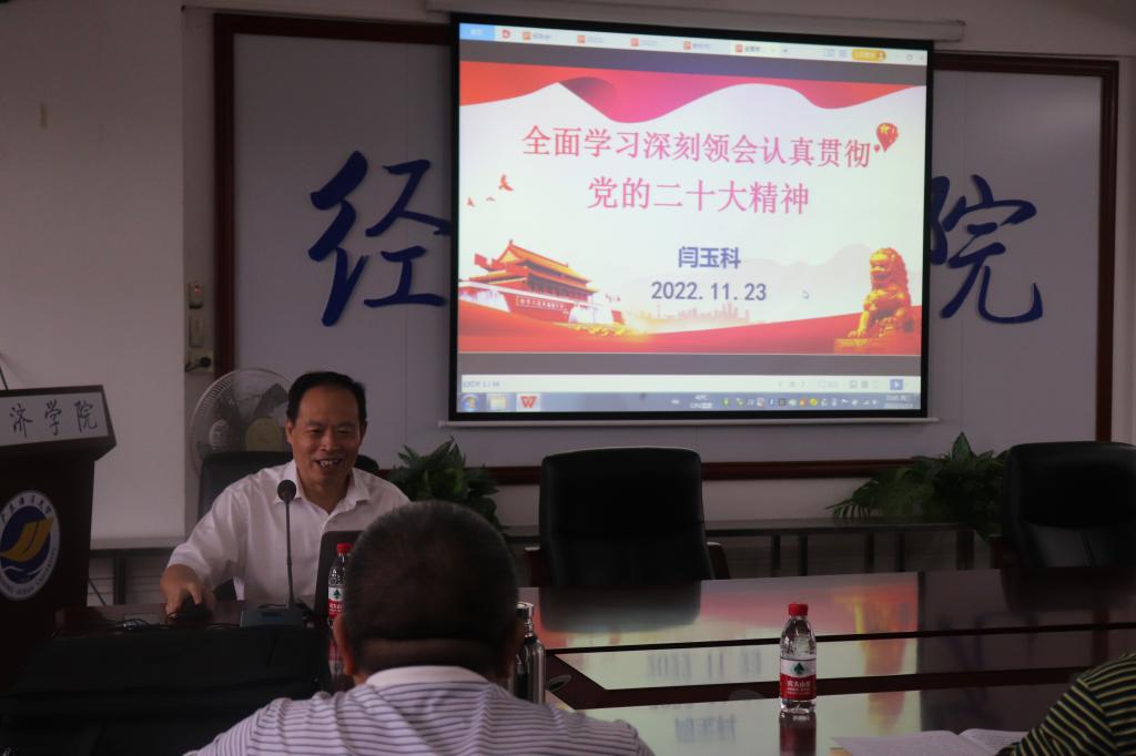 11月23日下午,必赢线路检测3003no1在广学楼718召开党的二十大精神宣讲报告会,邀请到学校党委理论宣讲团成员闫玉科教授为大会做报告,必赢线路检测3003no1全体教职工及部分学生党员共63人参加会议,会议由学院党委书记陈创主持。