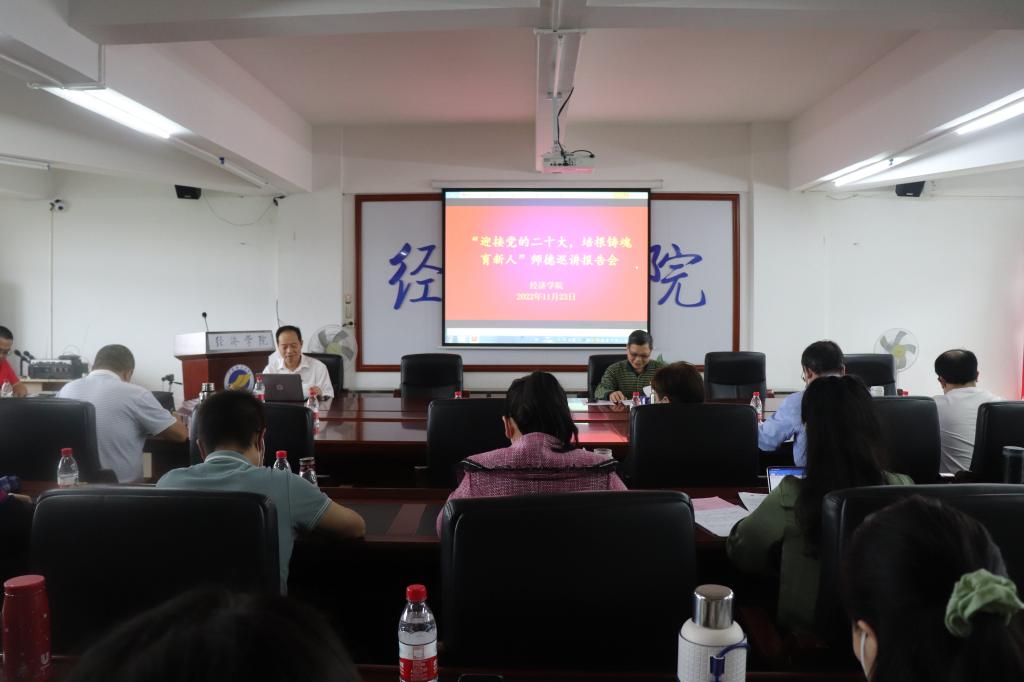 必赢线路检测3003no1为深入学习贯彻习近平新时代中国特色社会主义思想,落实立德树人根本任务,于11月23日下午在广学楼718召开师德巡讲报告会。会议邀请到学校师德宣讲团成员闫玉科教授进行宣讲。必赢线路检测3003no1全体教职工共43人参加会议。会议由学院党委书记陈创主持。