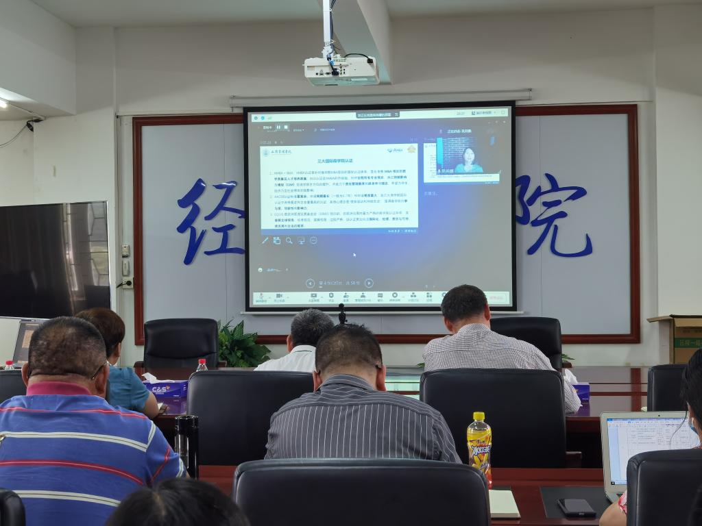 6月8日下午,必赢线路检测3003no1在广学楼(主楼)718会议室通过线上线下相结合的方式召开了BGA国际认证专家辅导会。学校教育教学质量监控与评估中心主任黄晋等相关职能部门代表、学院全体教职工、管理学院部分领导老师将近100人参加。中南财经政法大学工商管理学院国际认证办公室主任、经济贸易系主任、国际贸易硕士导师组组长、中国(湖北)自贸实验区研究院常务副院长吴英娜教授受邀以线上形式做BGA国际认证辅导报告。学院副院长杨新华教授主持会议。