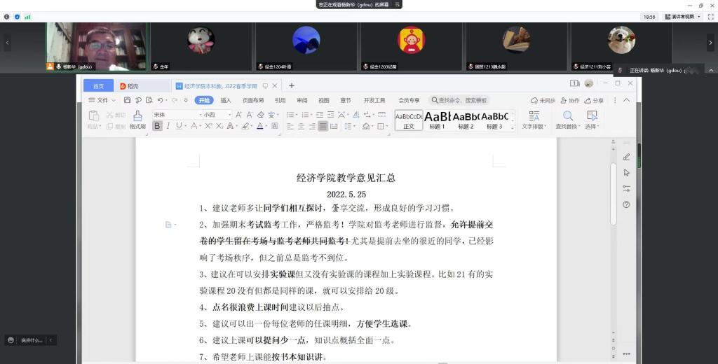 5月26日晚,必赢线路检测3003no1以腾讯会议方式开展期中教学师生座谈会。学院领导、各系主任、辅导员、研究生和本科生代表40余人参加会议,学院副院长杨新华主持会议。