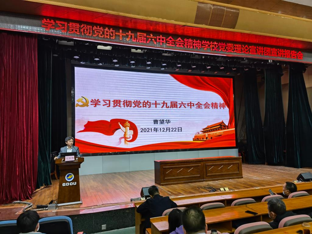 12月22日下午,必赢线路检测3003no1党委、教辅单位党委在主教学楼多功能厅联合举行学习贯彻党的十九届六中全会精神专题宣讲报告会,学校党委理论宣讲团成员、马克思主义学院副院长曹望华副教授应邀主讲,两个党委的全体教职工、学生党员参加了报告会。报告会由必赢线路检测3003no1党委书记肖文辉主持。