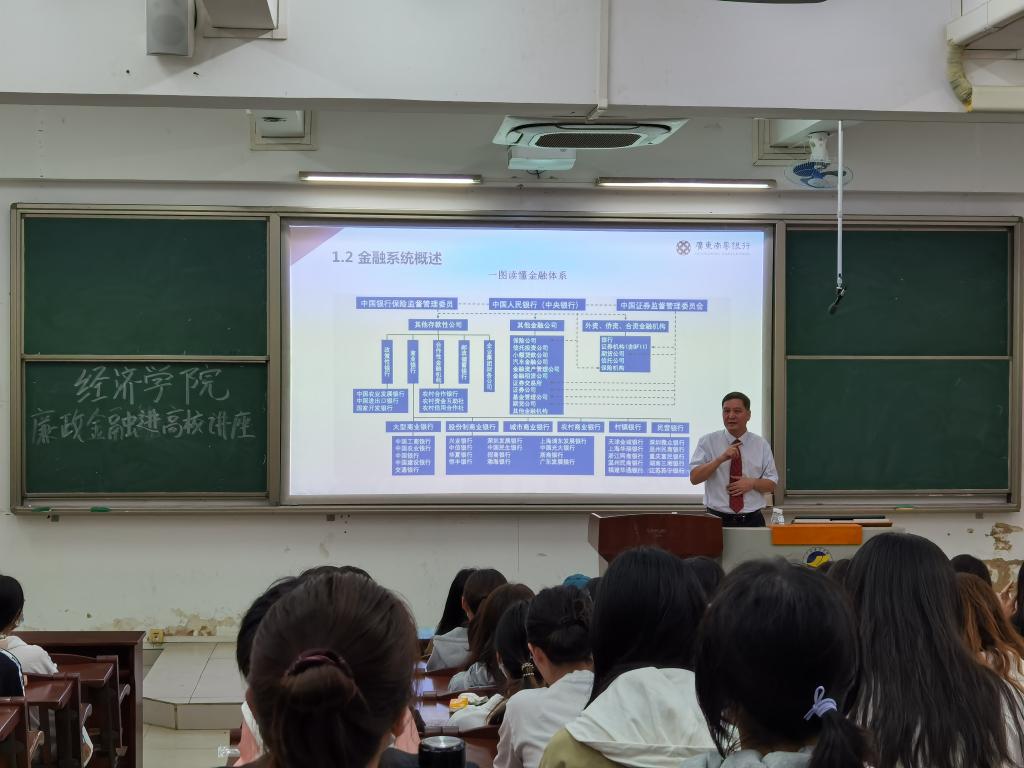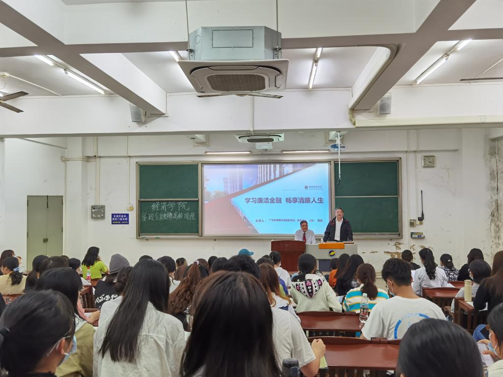 为深入开展清廉金融文化建设,构建清廉金融文化生态,进一步引导学生走好未来人生职业发展之路,10月13日下午,湛江银保监分局与必赢线路检测3003no1在湖光校区钟海楼03020教室共同举办了一场“清廉金融三课”进高校活动。湛江银行同业公会会长、南粤银行党委副书记、副董事长、行长陈武作《学习廉洁金融,畅享清廉人生》主题报告。学院125名本科生参加,报告会由院长居占杰主持。