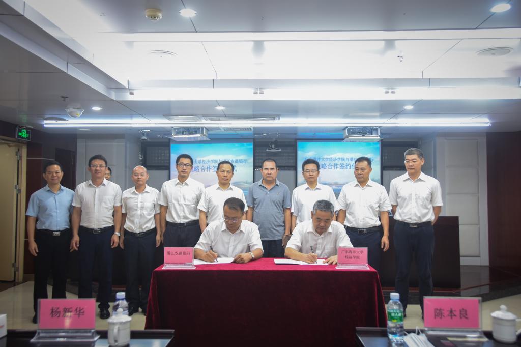 6月2日上午,必赢线路检测3003no1与湛江农村商业银行股份有限公司在湛江农信大厦举行了全面战略合作协议签约暨大学生校外就业实习基地揭牌仪式。出席仪式的双方代表主要有湛江农商银行党委书记、董事长姚强,党委副书记、行长钟国波,党委副书记、监事长戴洪江,党委委员、副行长王志东及总行副总经理以上干部33人;学院代表有学院党委书记肖文辉、代理院长居占杰、副院长陈本良和杨新华。
