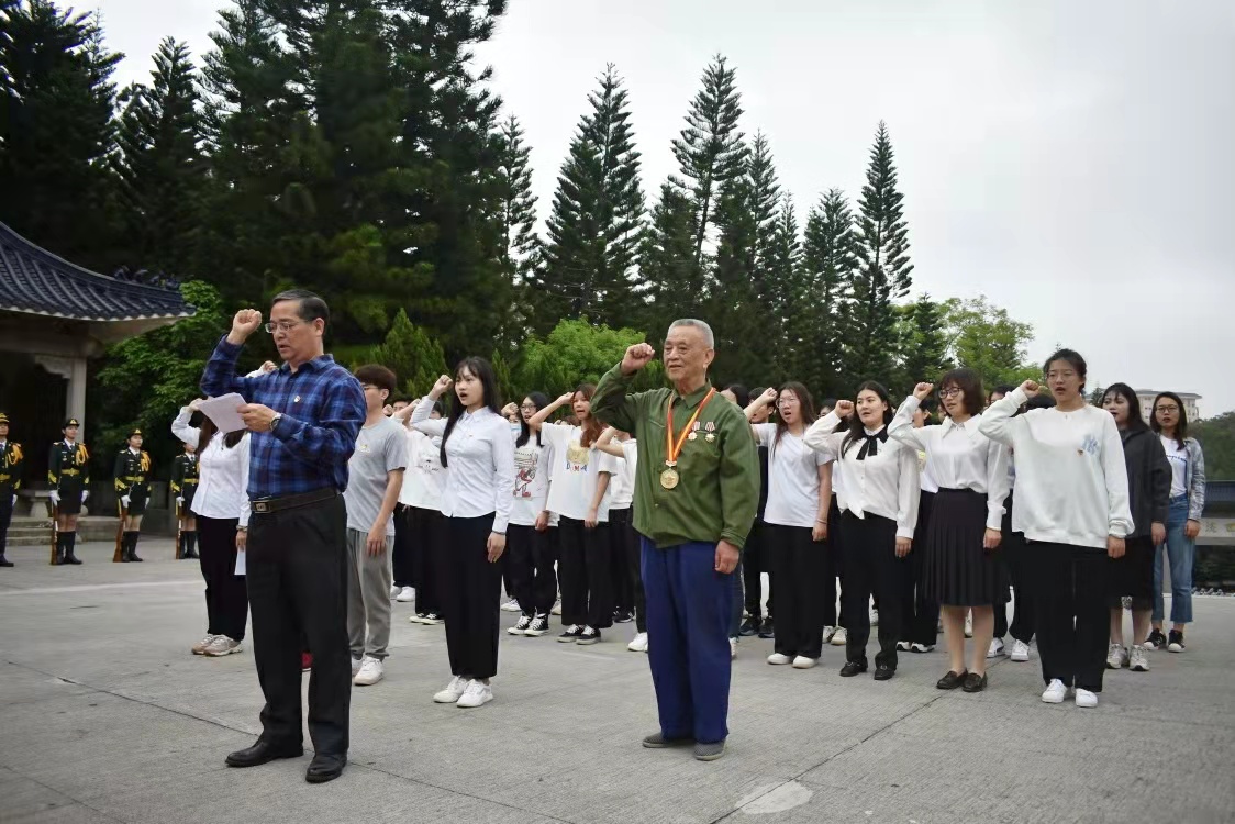 随后,老党员、离休军人田欣民同志现场与学生党员们上了一堂深刻的主题党课。活动中,田欣民与同学们分享了自己的参军生涯和参加此次活动的感受,对同学们提出了期望。田老先生原是空军二师参谋长,飞行时长达29年,1991年退伍,曾被中组部评为全国离退休干部先进个人。他指出,我们在此瞻仰革命先烈,不仅仅是为了铭记那些为争取国家独立、民族解放、人民幸福、社会安宁而献出宝贵生命的英雄们,同时我们要深刻明白,一直以来英烈们的精神始终生生不息,红色基因一直在我们的血脉中流淌,我们要饮水思源、不忘来路,继承先烈遗志,化历史的悲痛为无穷之力量,为社会主义更加美好的未来团结奋斗。