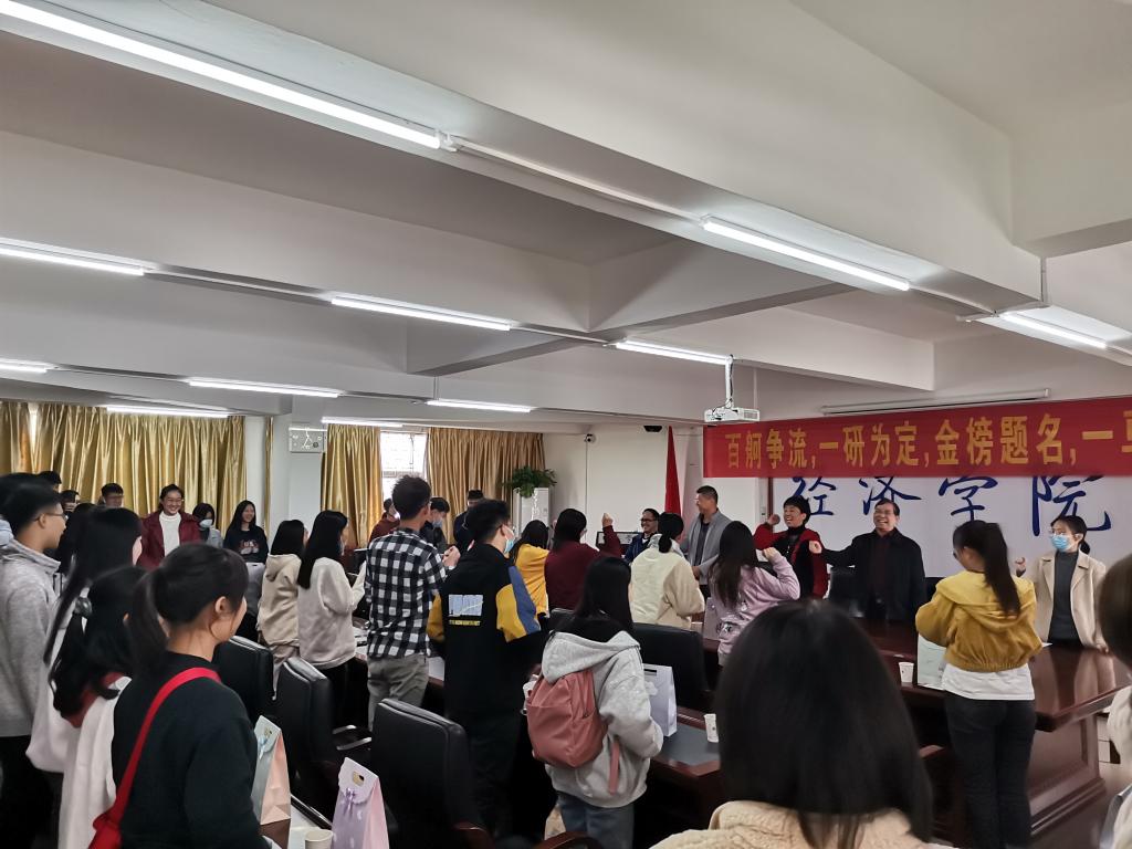 12月25日上午,必赢线路检测3003no1在主楼718召开了考研学子行前欢送会。学院党政领导、全体辅导员和全体2021届考研同学参加了本次会议。