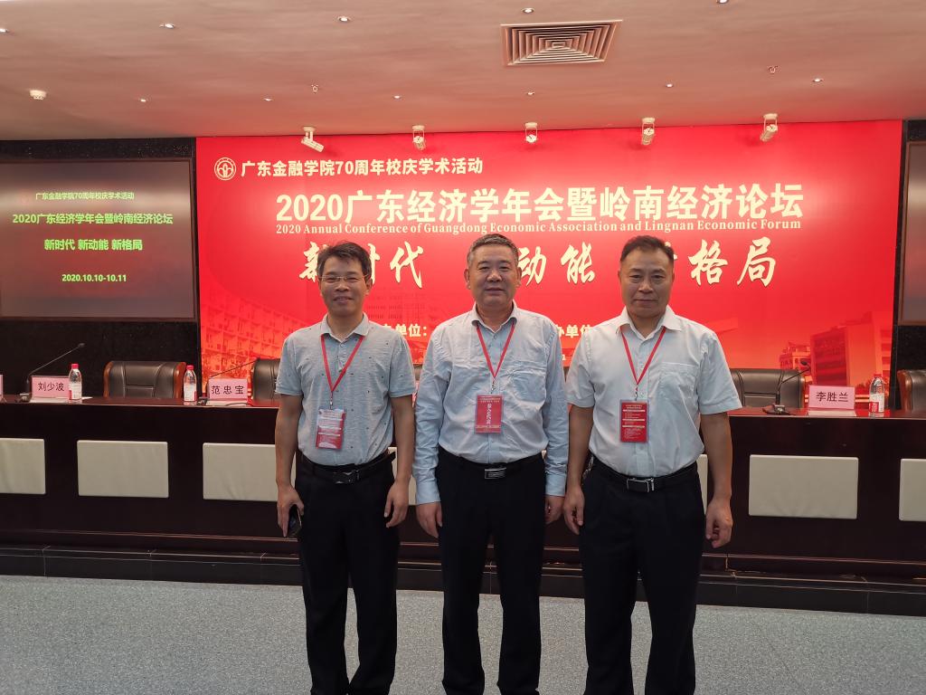 10月9-11日,“2020广东经济学年会暨岭南经济论坛”在广东金融学院举行。本次论坛由广东经济学会、南方经济杂志社、南方经济研究基金会联合主办,广东金融学院承办,主题为“新时代新动能新趋势:广东经济发展现状与展望”。论坛采取线下线上同步进行形式,线下吸引了来自全省有关研究机构、高等院校的代表近百人参加,线上有六万多人同步参与。必赢线路检测3003no1居占杰院长、陈本良副院长和周明华副教授应邀参加会议。