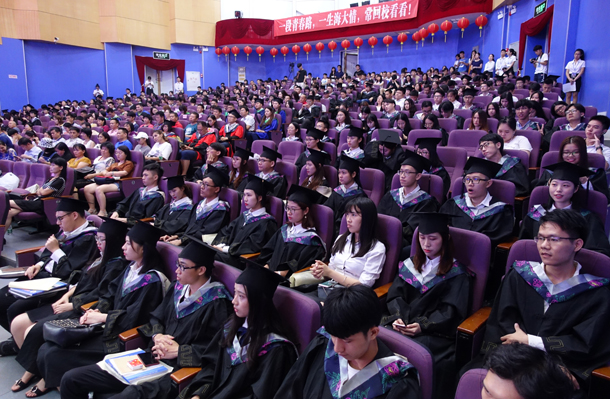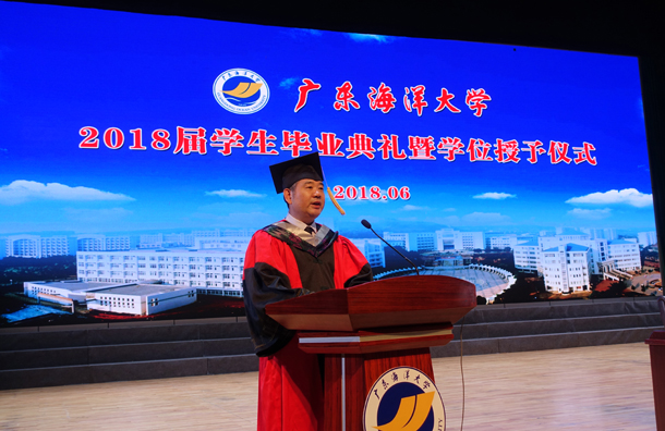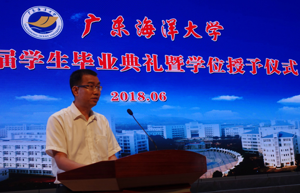 凤凰又花开,青春不散场!6月22日,必赢线路检测3003no1在湖光校区实验小剧场隆重举行2018届毕业典礼暨学位授予仪式,为280名本科毕业生、17名硕士毕业生送行。广东海洋大学叶春海校长、校党委副书记向献兵、学院党总支书记阮彭林、学院副院长居占杰教授(主持行政全面工作)、学校相关职能部门负责人、学院各系正副主任、全体辅导员、任课教师、校友代表以及部分毕业生家长出席,典礼和仪式由阮彭林书记主持。