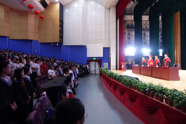 全体人员齐声高唱国歌后,居占杰宣读2018届毕业研究生、本科生授予学位决定和表彰决定,并作了高亢激昂的致辞。他首先对全体毕业生顺利完成学业表达了祝贺,回顾了同学们在学习生涯中的成长变化与取得的骄人成绩。并提出几点希望:“希望你们终身学习、独立思考;希望你们脚踏实地,不惧吃苦;希望你们担当奋斗、实现梦想”。最后叮嘱学生“当你们在人生征途上走累了的时候,就回到母校歇歇脚、喘喘气,整好行装再出发。母校将始终关注着你们,在你们获得成功的时候,母校为你们高兴鼓掌;当你们遇到困难的时候,母校会随时伸出双手助你们一臂之力。”
