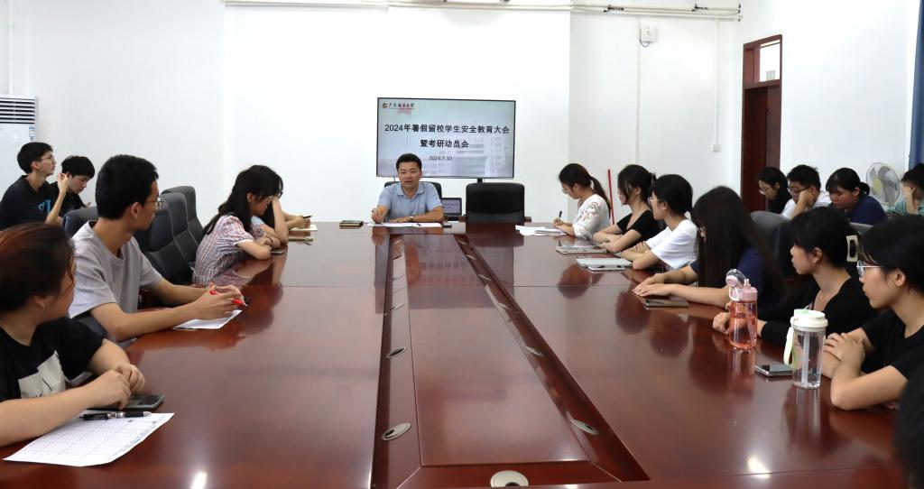 最后,钟桂安总结讲话,强调了留校学生暑期在校安全的重要性,就交通出行安全、人身安全、网络安全、消防安全、防诈骗、防溺水等教育提醒学生,希望留校学生增强安全意识,共同维护校园的安全稳定。鼓励2021级留校复习考研的学生,要坚定理想信念,心无旁骛,树立考研不动摇的决心,同时注意考研过程中的心态调整,做到劳逸结合,在考研备战的过程中不断完善自身、成就未来。提醒留校同学们制定详细学习计划,合理安排时间,提高学习效率,过个安全、充实和愉快的假期。