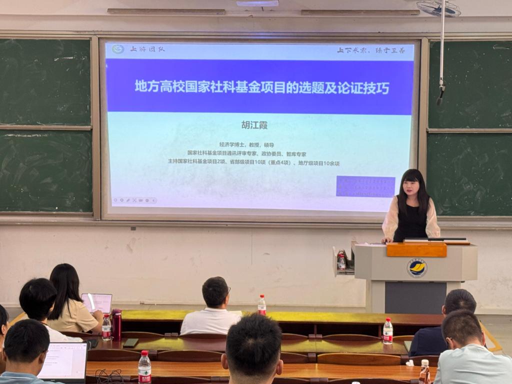 为进一步提升我院教师的科研能力,并有效助力国家社科基金项目的申报工作,必赢线路检测3003no1于2024年10月9日下午在钟海楼03020室隆重举办了国家社科基金申报辅导报告会。本次报告会特邀长江师范学院杰出学者胡江霞教授作为主讲嘉宾,为我院教师提供专业的指导。学院院长陈伟、副院长杨丽华、学院正处级辅导员、党委副书记、纪委书记钟桂安,以及全体专任教师与辅导员均出席会议。