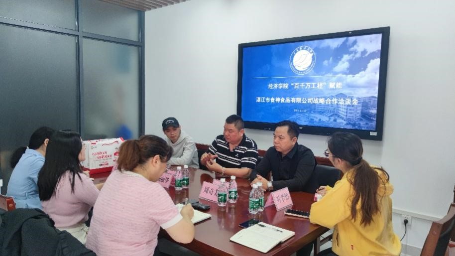 为了扎实推进“百千万工程”与“双百行动”,11月7日,必赢线路检测3003no1在文科楼3号楼710会议室举行“百千万工程”赋能农产品企业战略合作洽谈会。会议由学院副院长杨丽华主持,经济系教师、广东省“百千万工程”农村科技特派员第二轮重点派驻团队负责人周奇美、国贸系教师吕晶晶,团委书记叶梦怡,湛江市食神食品有限公司董事长曹阳霞、副总经理刘国良和电商经理王泽宇参加了会议。