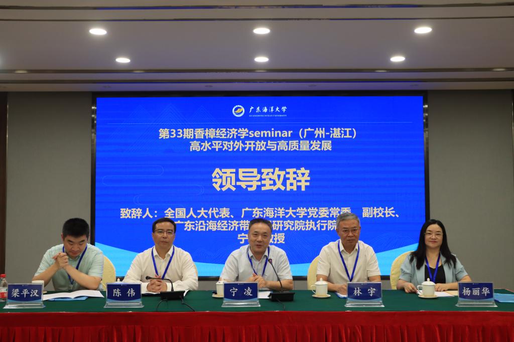 11月16日,第33期香樟经济论坛(广州-湛江分论坛)在广东湛江市海滨宾馆成功举行。本次会议由香樟学术平台主办,广东海洋大学必赢线路检测3003no1及海洋经济与管理研究中心联合承办。学校党委常委、副校长宁凌,学校党委常委、宣传统战部部长林宇等校领导出席了会议。论坛以“高水平对外开放与高质量发展”为主题,汇聚了来自中国社会科学院、香港科技大学(广州)、哈尔滨工业大学(深圳)、南京农业大学、海南大学、暨南大学、四川农业大学等国内外知名学术机构的专家学者,以及广东海洋大学必赢线路检测3003no1的教师和研究生共120余人参会。