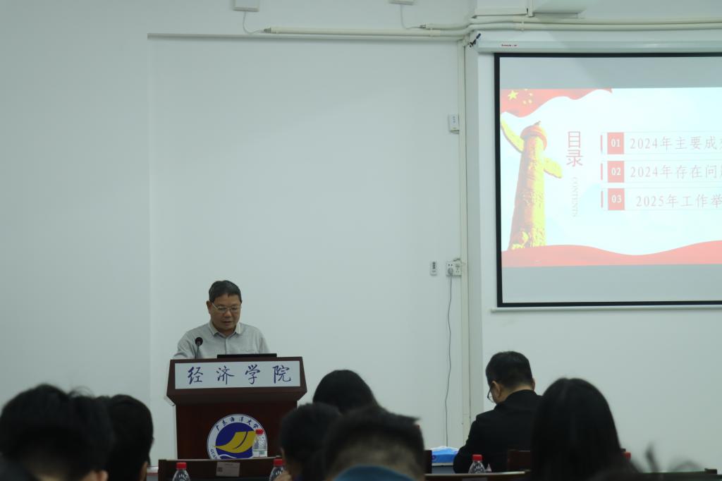 陈伟院长总结了2024年学院工作取得的成绩和存在的不足,对新学期的重点工作和关键工作进行了部署安排。陈创书记总结强调学院要坚持以习近平新时代中国特色社会主义思想为指导,深化党建引领,全面推进党建与业务融合发展,努力谱写高质量发展新篇章。