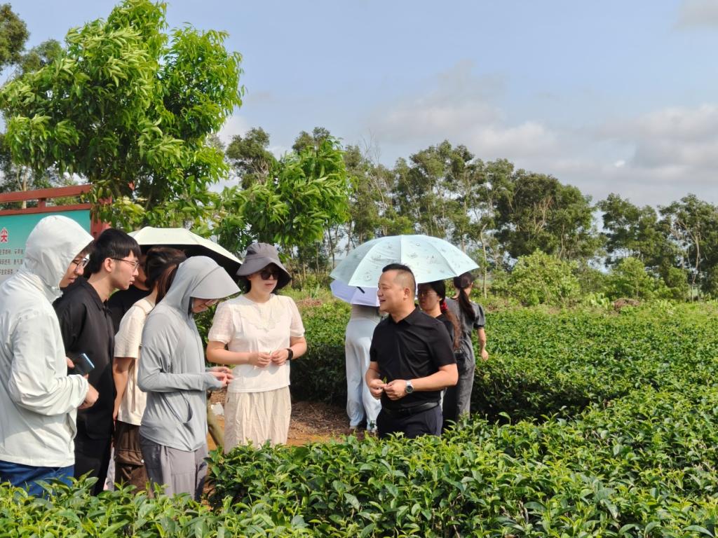 5月8日上午,团队前往湛江广垦雄鸥茶业有限公司,参观了茶园和现代化茶叶生产线,了解茶叶种植、加工及品牌营销经验。企业负责人介绍了茶叶产业的现代化、数字化转型实践,双方就农业科技应用、市场拓展等议题展开讨论。