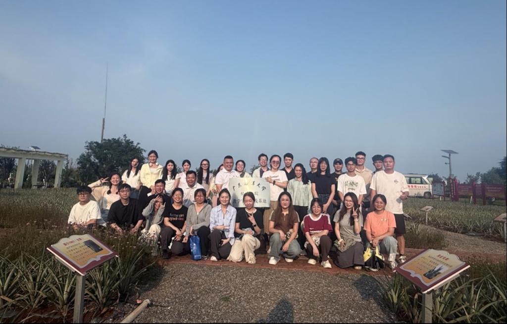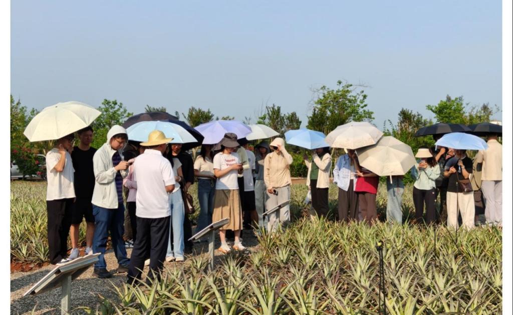 5月7日下午,调研团队首站来到位于徐闻的广东农垦红星农场有限公司。该公司以菠萝、甘蔗种植为主导产业,近年来积极发展农文旅融合模式。师生们实地考察了种植基地,并与企业负责人深入交流,了解其发展历程、产业布局及未来战略规划。