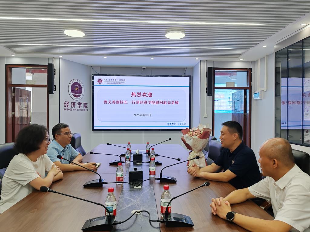 慰问中,鲁义善副校长与赵亮教授进行了亲切交谈。他详细询问了赵教授近期教学科研工作进展、团队建设情况以及在工作、生活方面存在的实际困难,认真听取了赵教授对学校学科发展、人才培育等方面的建议。鲁义善副校长高度评价了赵亮教授在科研领域的杰出贡献,特别对他成功获得2025年度广东省社科联青年学术工作坊立项表示高度赞赏,此次立项充分彰显了赵亮教授的学术实力和创新能力,是学校高层次青年人才队伍建设的重要成果。