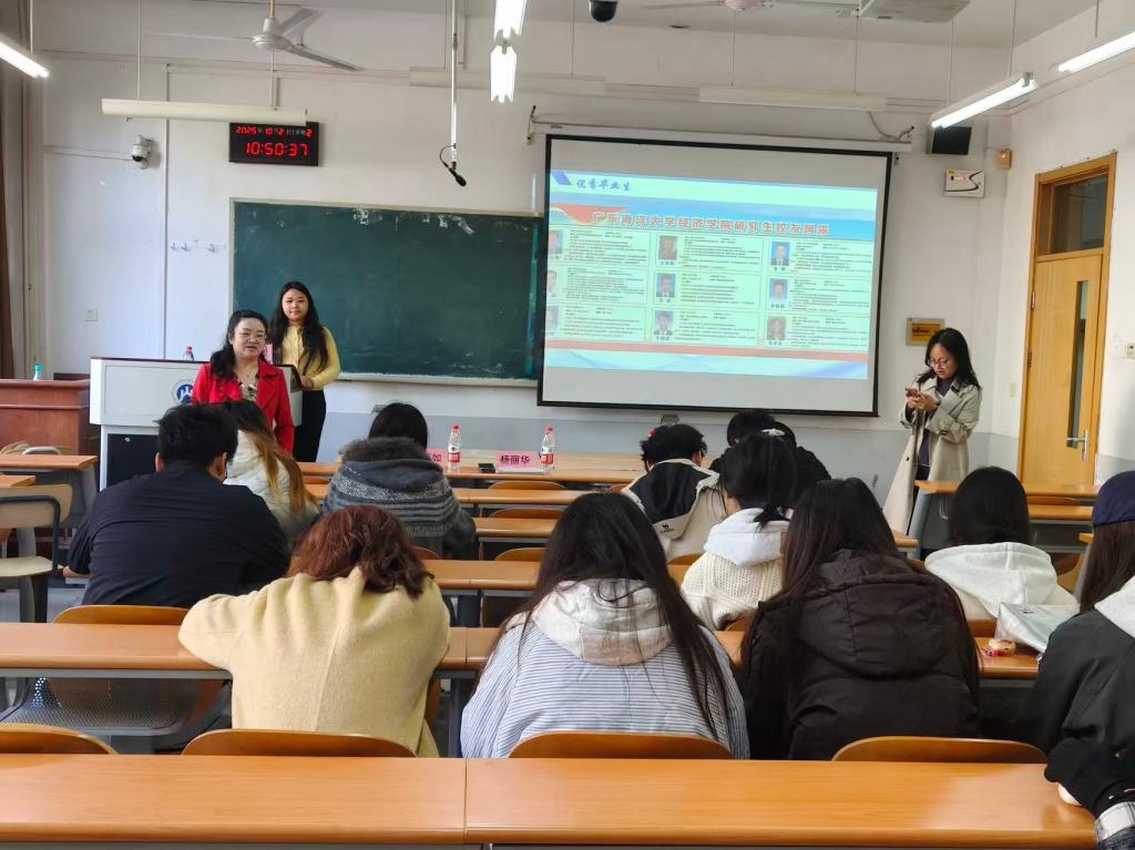 为深化校际学科合作、拓宽优质生源渠道、助力高层次人才培养,10月21日上午,必赢线路检测3003no1副院长杨丽华率专任教师姚微、研究生辅导员陈家敏、教学秘书陈丽如一行,赴山东财经大学国际经贸学院开展研究生招生宣讲,以精准对接需求的宣讲与交流,搭建起两校协同育人与人才输送的重要纽带。