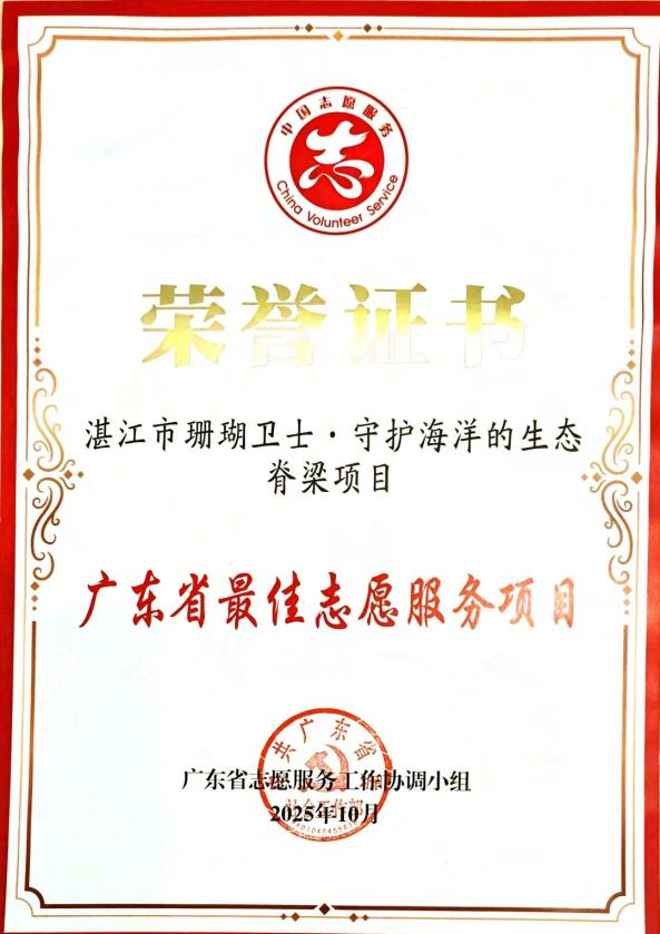 最佳志愿服务项目殊荣既是广东海洋大学实施“内涵发展、特色发展、创新发展”战略的典型成效,必赢线路检测3003no1“一核双轮三维四平台”创新创业教育模式成果的生动写照,也彰显了广东海洋大学师生志愿者在生态保护领域的担当。“珊瑚卫士”的星光正汇入南粤志愿服务的星河,让海洋生态保护的力量生生不息。