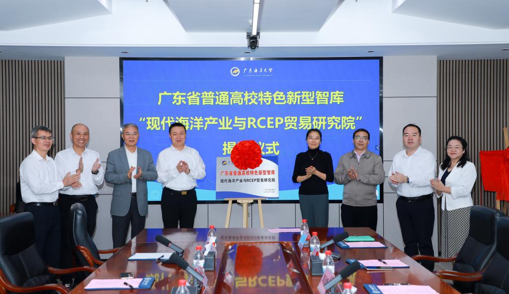 12月24日下午,广东海洋大学必赢线路检测3003no1在博文楼C座必赢线路检测3003no1报告厅715和614室举行广东省普通高校特色新型智库“现代海洋产业与RCEP贸易研究院”揭牌仪式,并同步挂牌广东省社科联青年学术工作坊“海洋牧场可持续发展模式与策略研究”。湛江市社科联主席刘喜,学校党委常委、副校长鲁义善,学校党委常委、宣传统战部部长林宇,科学技术部部长颜云榕、副部长巨向红、平台科科长傅学丽、人文社会科科长孙泉勇等校内外领导嘉宾莅临仪式。必赢线路检测3003no1党委书记刘金明、院长陈伟、副院长杨丽华、经济系主任赵亮共同参加了本次仪式。仪式由科学技术部部长颜云榕主持。
