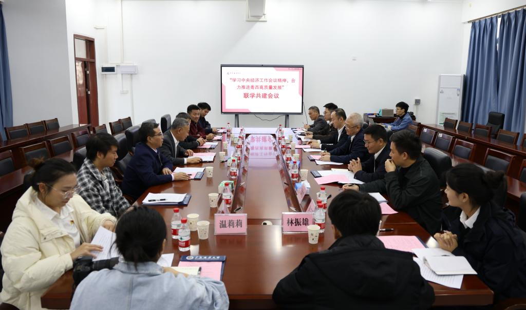 座谈会上,湛江市政府研究室代表领学了习近平总书记在中央经济工作会议上的重要讲话精神,并结合落实党的二十届三中全会精神,介绍了湛江市的学习落实情况,以及市委“六大定位”、“四抓”等经济发展改革部署,阐释了湛江在现代化沿海经济带、省域副中心城市、“一带一路”海上合作支点城市、海洋经济创新发展示范城市、全国性综合交通枢纽以及北部湾中心城市的重要战略地位;广东海洋大学必赢线路检测3003no1展示了在国际贸易、区域经济和“百千万工程”等领域研究、落实情况;湛江海关介绍了“并行港”业务改革成效及促进外贸质升量稳的总体情况。