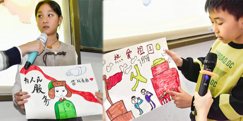 活动在《我和我的祖国》嘹亮歌声中拉开帷幕。学生党员组成的“红色宣讲团”生动讲述《鸡毛信》《王二小》等经典红色故事,通过"故事+问答"互动模式,引导孩子们在沉浸式体验中感悟革命精神。在"手绘心中的英雄"红色主题绘画环节,孩子们在党员和志愿者们的引导帮助下用稚嫩的笔触描绘刘胡兰、董存瑞等英雄形象,将"红色印记" 转化为艺术表达。