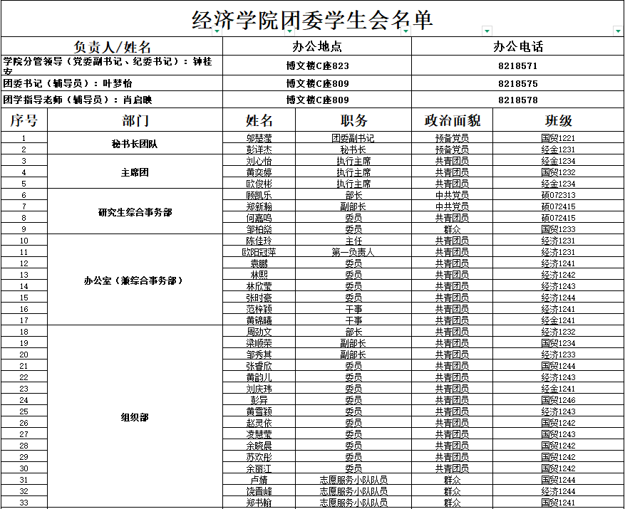分管24级经济系、国贸系本科生。负责学生会,校友,助贷,工会委员;分管领导安排的其他工作。