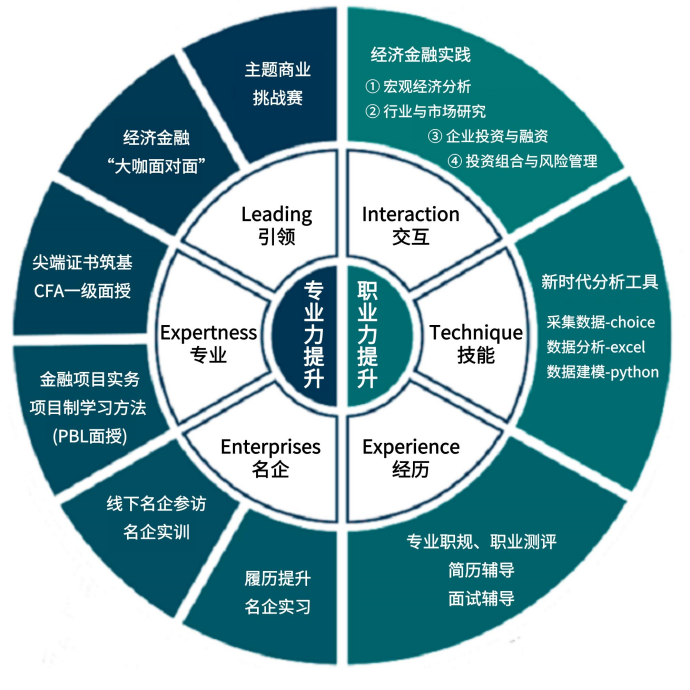 金融经济前导课程:包括经济学、金融学、投资学、风险管理等基础课程,旨在为学生打下坚实的理论基础。另外还匹配金融英语课程,提升核心英语词汇理解。