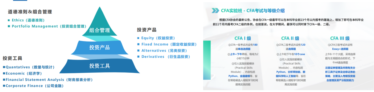 CFA菁英班,旨在培养学生具备国际化视野、专业能力强、实践能力强,创新能力强的复合型、创新型、高水平金融菁英人才。