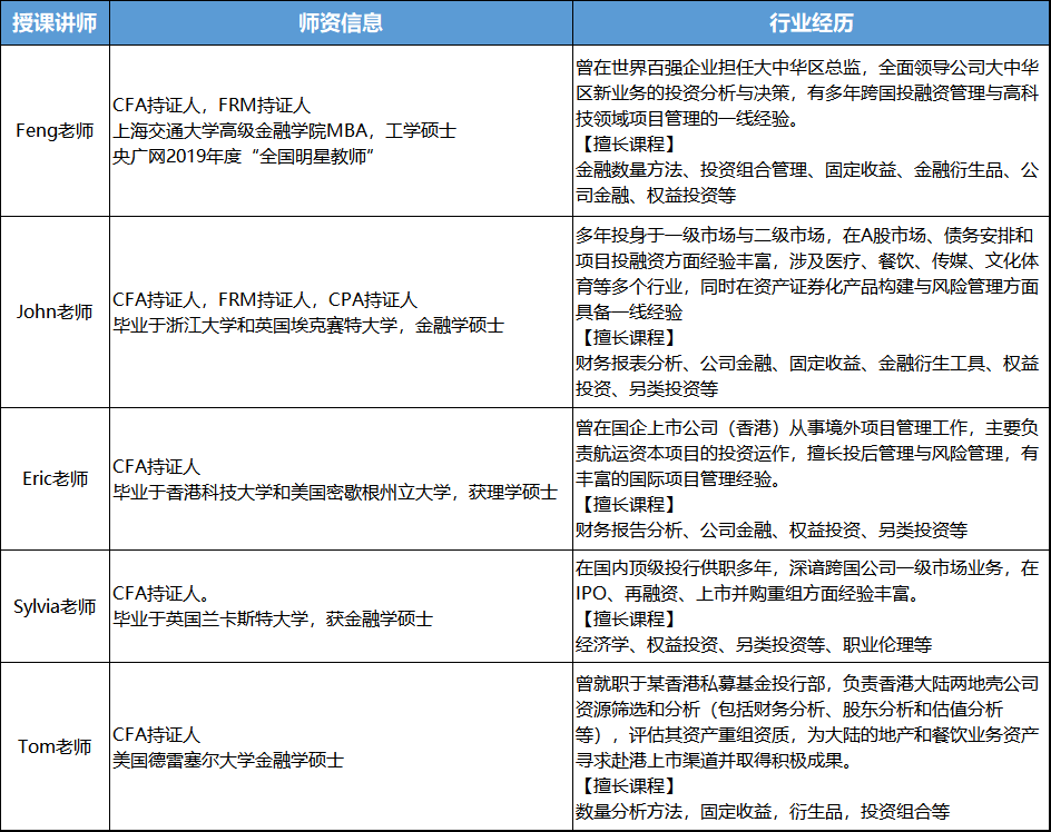 (二)CFA菁英班师资介绍