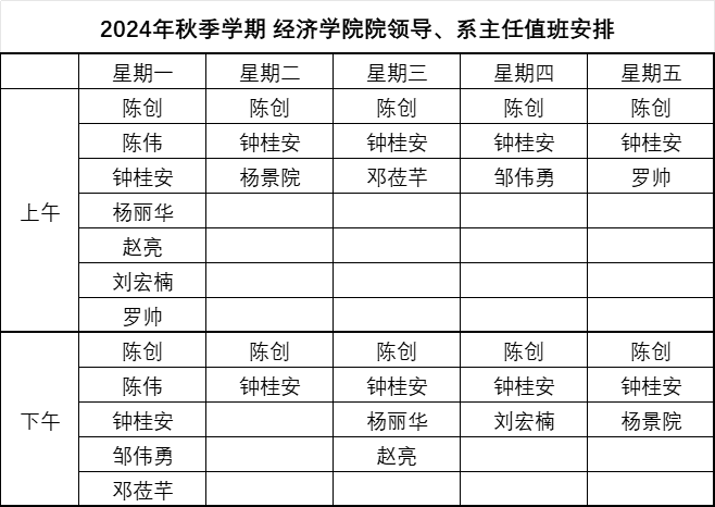 2024年秋季学期 必赢线路检测3003no1院领导、系主任值班安排