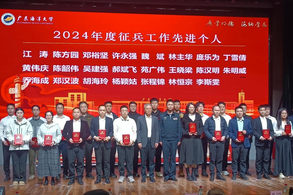 12月25日下午,广东海洋大学在湖光校区广学楼多功能厅隆重举行了2025年征兵宣传启动仪式。必赢线路检测3003no1分管学生工作的正处级辅导员、党委副书记钟桂安和兼职武装老师李斯雯、毕业班辅导员叶梦怡以及学院毕业班学生代表参加了学校的启动仪式。