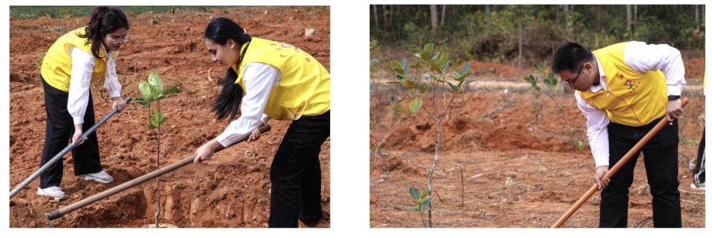 许倬英:“植树时,大家分工明确、紧密协作,挖坑栽树,虽说疲惫,但成就感十足。看着树苗挺立在土地上,我真切地感受到生态正在逐步改善,同学们的满腔热情也让我深刻领悟了‘人与自然和谐共生’的理念。”