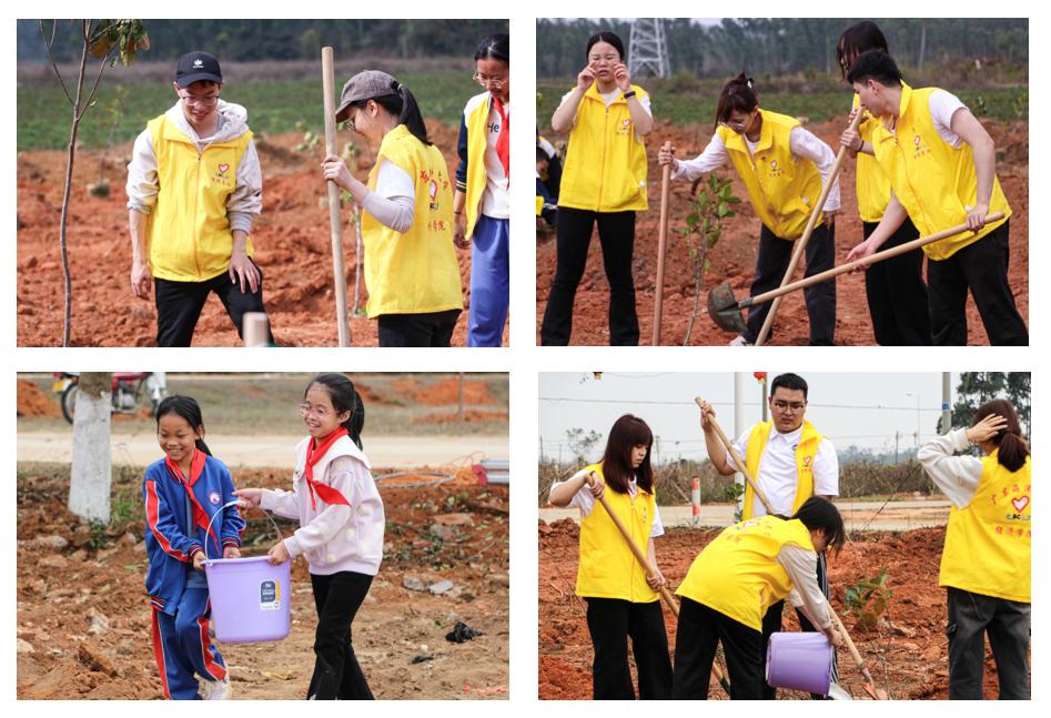 2025年3月10日下午,在春日的暖阳下,必赢线路检测3003no1团委青年志愿者协会组织了学院党员、发展对象、积极分子、团学骨干等40余名大学生志愿者,跟随学校党委书记杨洲、党委副书记谭平等人一同前往遂溪县河头镇,与当地干部群众、双村小学师生共同开展植树活动,以实际行动迎接植树节,践行“绿美广东”的使命。而这一活动,也成为了大中小学思政课一体化改革创新的生动实践。