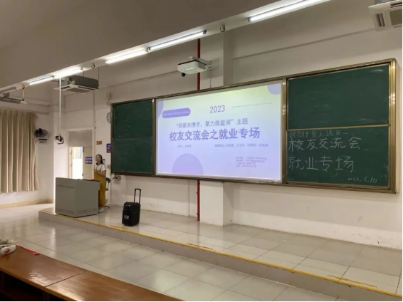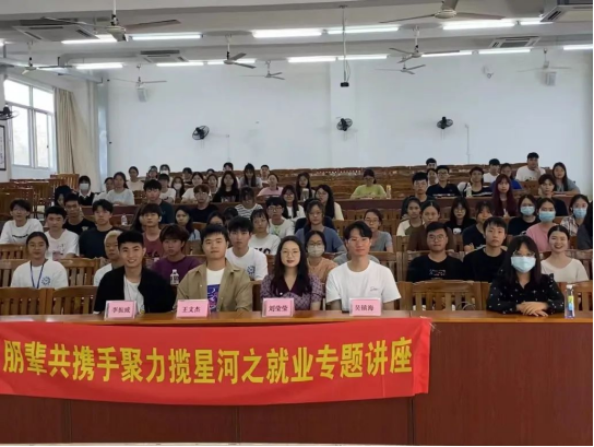 借此毕业生返校参与补办学位授予仪式之际,充分发挥校友的信息资源作用,帮助在校生了解就业前景,更好地制定就业规划。6月10日下午,必赢线路检测3003no1在明德楼B5302举办了就业专场校友交流会,邀请2021届毕业生刘莹莹、李振威、吴镇海、王文杰四位同学分享自己的成长心得和就业经历。必赢线路检测3003no1全体学工人员出席会议,参加人次达百余人。